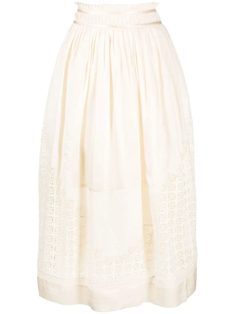 Cadena lace-insert midi skirt Highlights - Ivory white - Cotton-linen blend - Lace embroidery - Multi-panel design - Pleat detailing - Grosgrain ribbon trim - Concealed side zip fastening - Mid-length Imported Composition Lining: Cotton 100% Outer: Linen/Flax 60%, Cotton 40% SIZE & FIT Model measurements Height 5 ft 9 in(1.75 m) Bust/Chest 30.7 in(78 cm) Hips 34.64 in(88 cm) Waist 22.83 in(58 cm) FittingInformation This piece fits true to size. We recommend you get your regular size Designed to be fitted at the waist, loose over the leg Made with a mid-weight non-stretch fabric Washing instructions Dry Clean Only