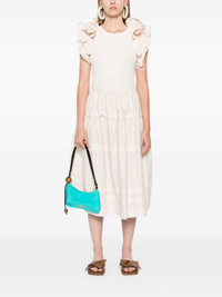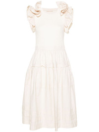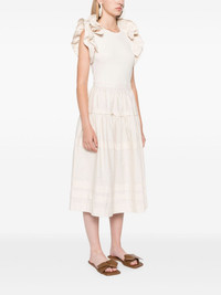 Francine midi dress Highlights - Light beige - Panelled design - Ribbed trim - Round neck - Ruffle cuffs - Tiered skirt - Two side inset pockets - Flared hem - Side zip fastening Imported Composition Cotton 47%, Modal 47%, Spandex/Elastane 6% SIZE & FIT Model measurements Height 5 ft 9 in(1.75 m) Bust/Chest 31.88 in(81 cm) Hips 34.64 in(88 cm) Waist 24.01 in(61 cm) FittingInformation Designed for a close fit at the chest and waist with a loose fit at the hip Made from a midweight fabric This piece fits true to size – take your usual size