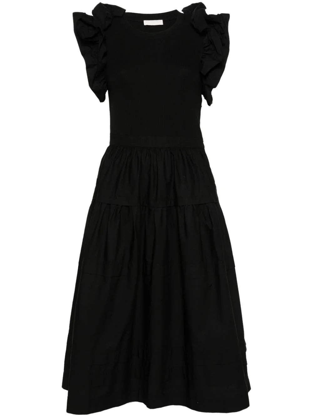 Francine midi dress Highlights - Black - Cotton blend - Panelled design - Round neck - Ribbed panelling - Sleeveless - Ruffled detailing - Ruched detailing - Flared skirt - Unlined - Concealed side zip fastening Imported Composition Modal 47%, Cotton 47%, Elastane 6% SIZE & FIT Model measurements Height 5 ft 11 in(1.8 m) Bust/Chest 33.07 in(84 cm) Hips 37 in(94 cm) Waist 25.59 in(65 cm) Measurement CHEST 29.92 in(76 cm) HIPS 52.75 in(134 cm) LENGTH 46.06 in(117 cm) WAIST 27.55 in(70 cm) FittingInformation Designed for a close fit at the chest and waist with a loose fit at the hip Made from a midweight fabric This piece fits true to size – take your usual size