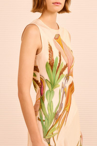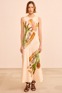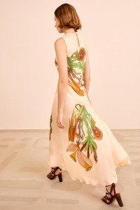 A signature Ulla Johnson silhouette, the Gaea Dress breathes with surreal, mystical florals from the gestural work of Art Brut painter Anna Zemankova. This multicolored dress is crafted from luxurious silk twill and is cut on the bias for an elegant, body-skimming fit that brings the botanicals to life. - Silk twill - Model Height: 5'10" - Designed for a body-skimming fit - Midi length - Round neckline - Sleeveless - Button keyhole at back - Composition: 100% silk - Gentle machine wash warm This item is part of our collaboration with the foundation of Anna Zemankova.