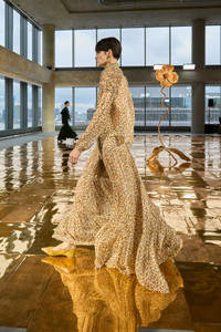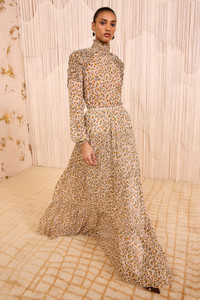 Arriving in Look 23 on the AW25 runway, the Gaelle Skirt billows in crinkled chiffon, a weightless fabrication with ethereal texture. Printed with a delicate feather motif, this multicolored skirt features an exquisitely tiered silhouette with soft gathering. - Crinkled silk chiffon - Model Height: 5'10" - Maxi length, fixed high-rise waist - Fully lined - Concealed side zipper - Composition: 100% silk - Dry clean only