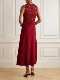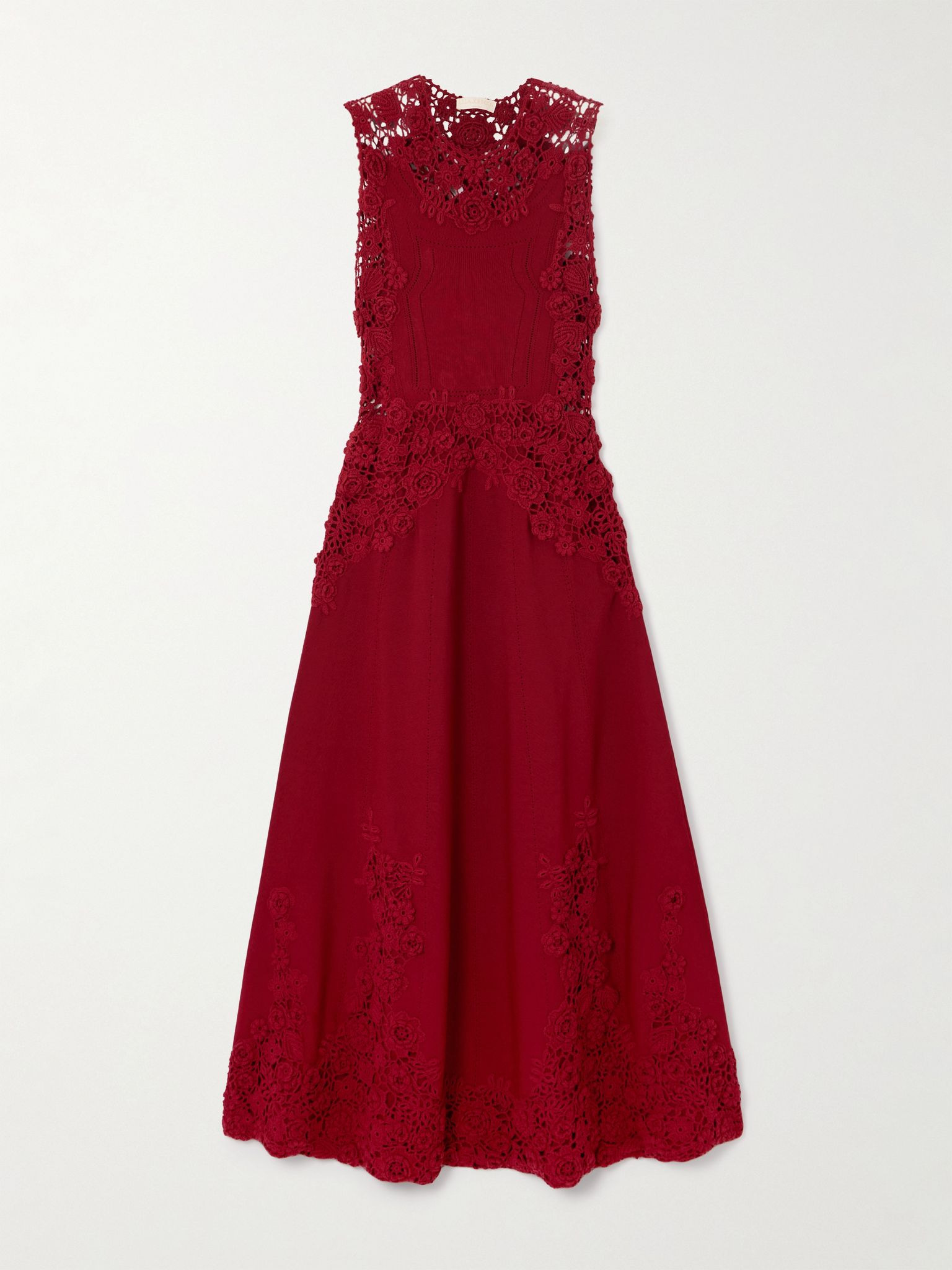 Genoveva crocheted lace-trimmed cotton-blend midi dress Burgundy