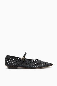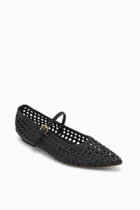 Our Gracie Flat is a forever favorite silhouette handwoven in Italy from vegan leather in timeless black, adding a touch of texture and uniqueness to your look. They feature an elegant point-toe silhouette, making them versatile enough for both casual occasions and more polished events. Composition: 100% Vegan Nappa Leather