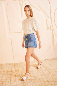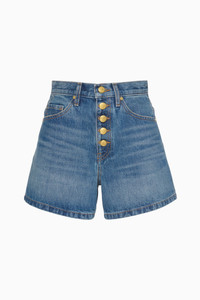Our Greta Short is made from non-stretch denim in a goes-with-anything blue wash that’s beautifully whiskered. It features a classic, five-pocket construction and has a button fly at the high waist with our signature monogram-embossed buttons. Composition: 100% Cotton