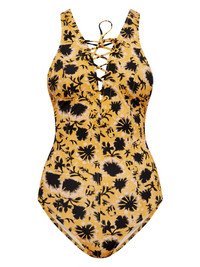floral-print swimsuit Highlights - Mustard yellow - Front tie fastening - Sleeveless - Be mindful to try on swimwear over your own garments. Imported Composition Polyamide 80%, Elastane 20%