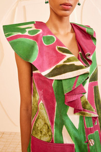Look 54 on our SS25 runway, the Harper Vest is a joyous celebration of color with imagery from American artist Lee Krasner’s 1971 painting, “Palingenesis.” Tailored from cotton twill, this multicolored style has a burst of cascading ruffles at the collar and a midi silhouette with oversized patch pockets. It fastens with buttons through the front and easily styles as a dress or a statement layering piece. This limited-edition garment is part of our deeply meaningful collaboration with the Pollock-Krasner Foundation. Composition: 100% Cotton
