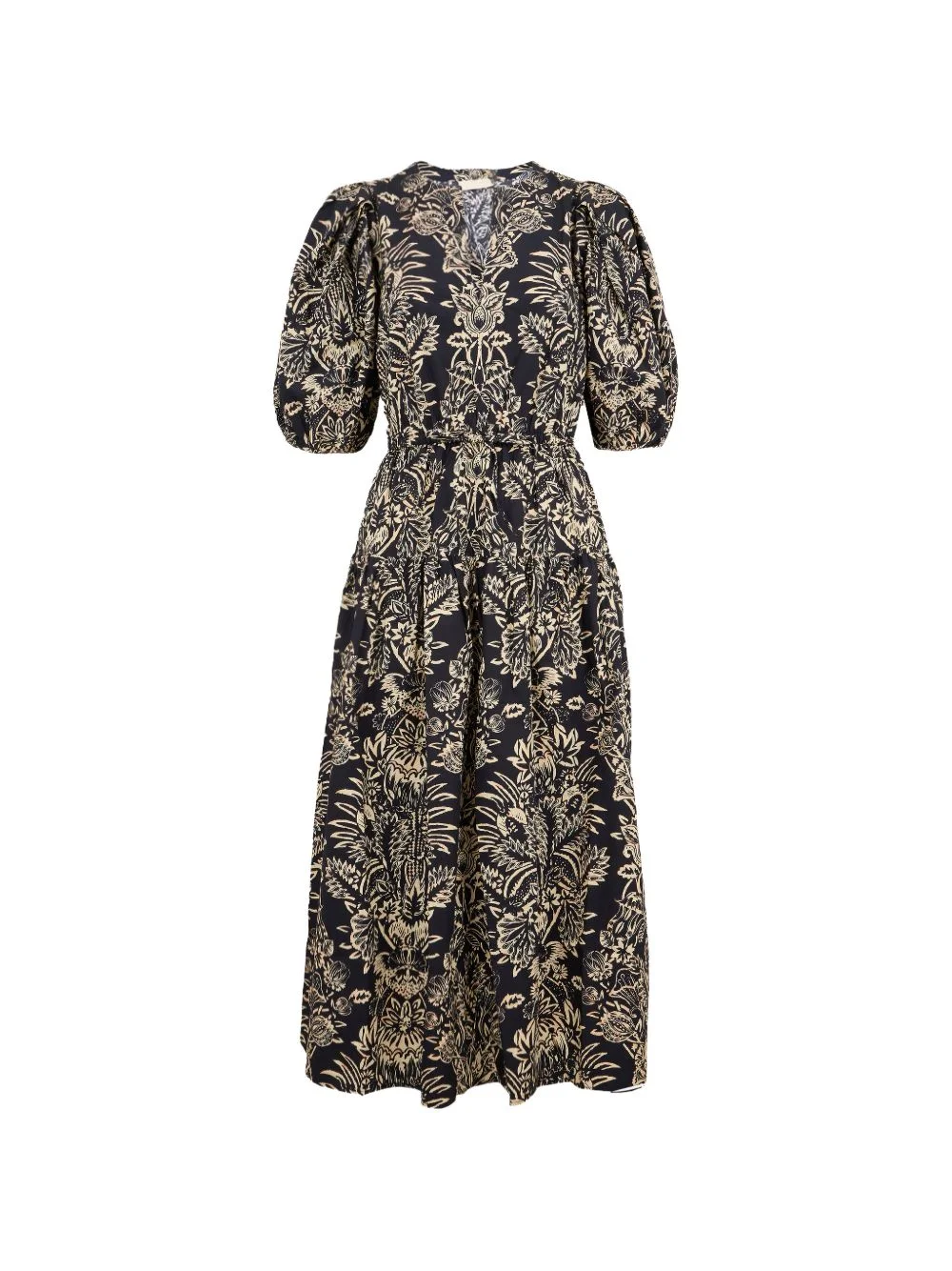 Harriet puff-sleeve floral midi dress Highlights - Black - Floral print - Drawstring waist - V-neck - Puff sleeves Imported Composition Cotton 100% Washing instructions Machine Wash