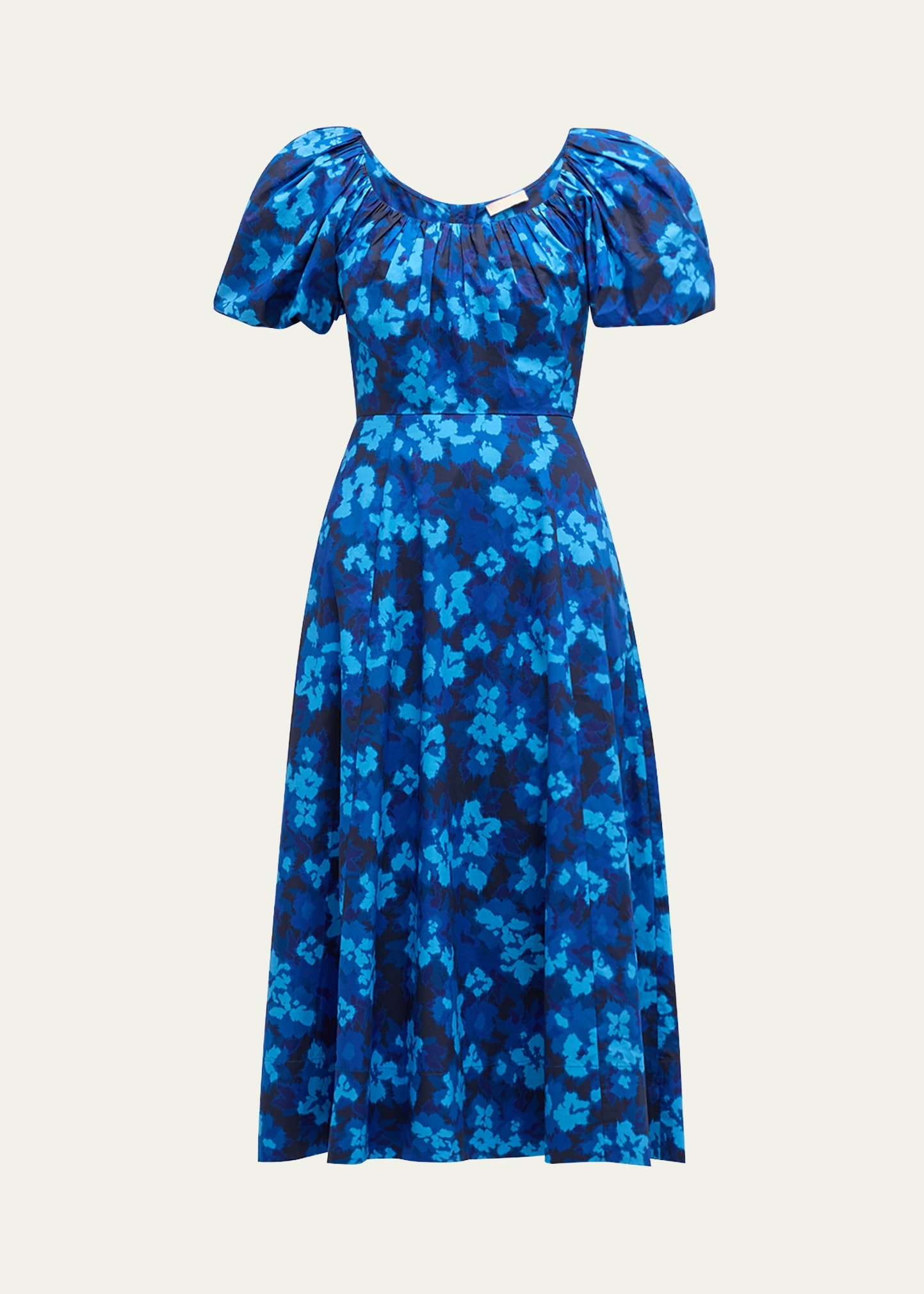 Ulla Johnson "Imara" floral-print midi dress featuring a gathered scoop neckline Short sleeves; approx. 13.9"L Side seam pockets A-line silhouette Hem falls below the knee Back zip Cotton Machine wash cold Imported Online Inquiries: BGS21_T66D5| Store Inquiries: #4886364