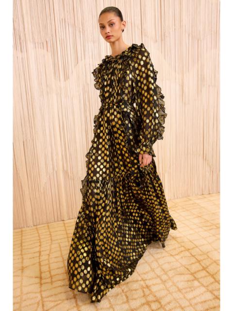 Made from cotton poplin, the Imara dress is patterned with a kaleidoscope of florals in various textures and shadows. This multicolored frock makes a statement with fluttering ruffles at the sleeves and has a classic midi hem. - Cotton poplin - Model Height: 5'11" - Designed to be fitted at the bust and waist, flares at hem - Midi length - Short sleeves - Concealed back zipper with pull - Composition: 100% cotton - Machine wash cold