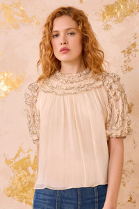 Isolda Silk Smocked Short Sleeve Blouse