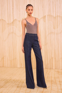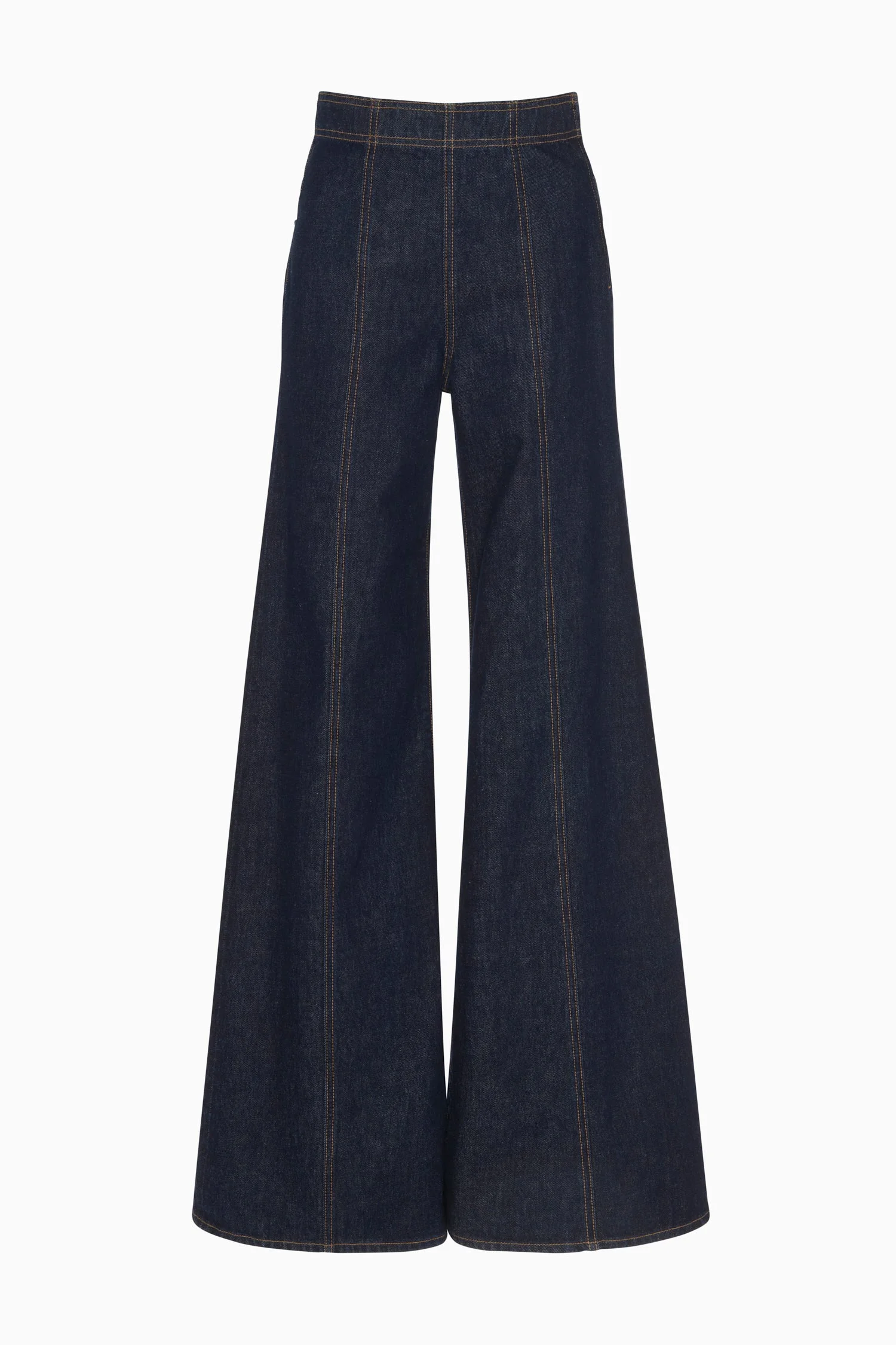 Our new Bianca is a classic wide-leg with a distinctive feel, designed with center-front raised seams down each side. It is responsibly handmade in Los Angeles from premium denim in our vintage-inspired Tigris wash. It has a flattering, high-rise waist and a Hollywood waistband for a clean finish. It fastens with a side-seam zipper. Composition: 100% Cotton Size & Fit - Model Height: 5'10"