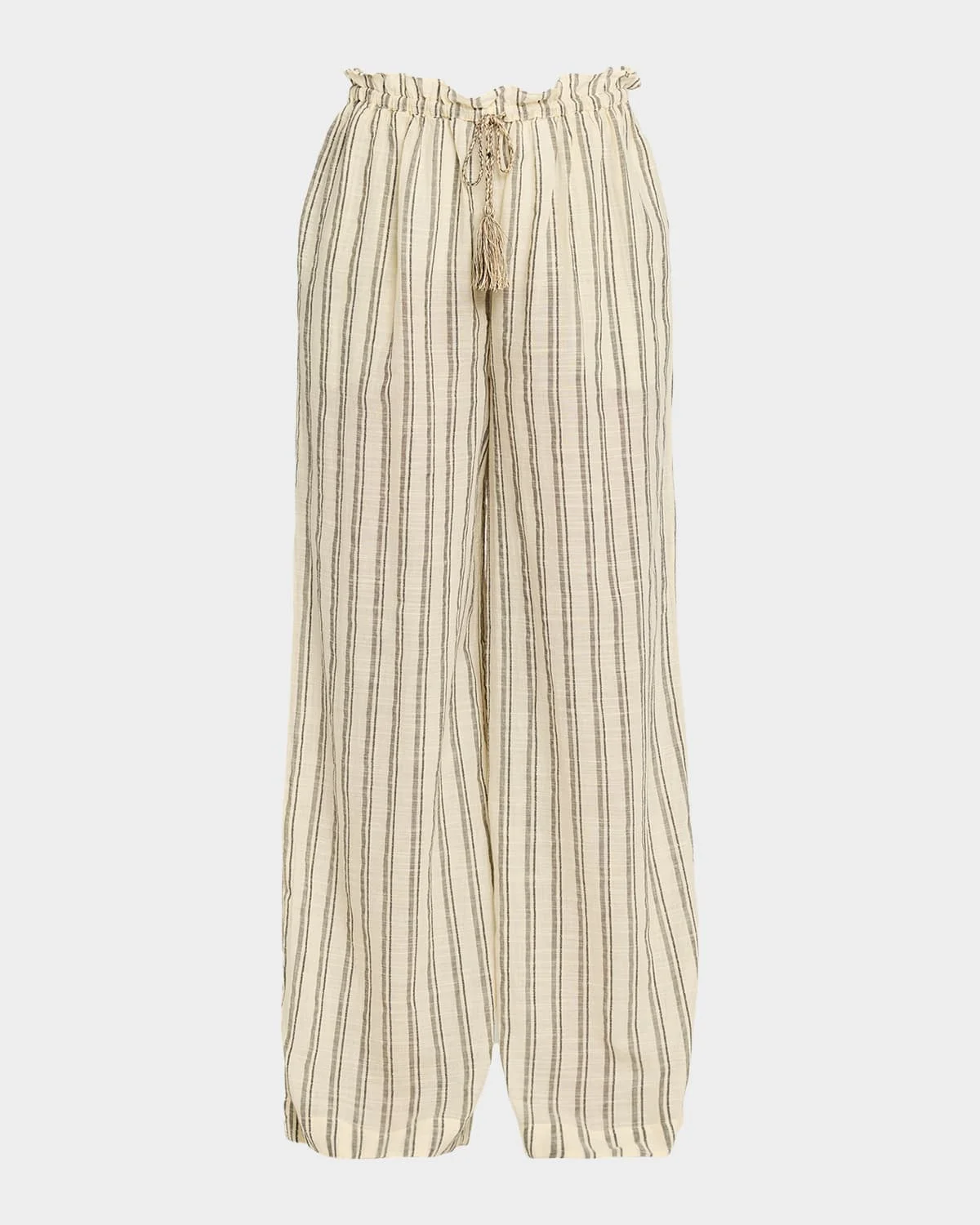 Ulla Johnson "Josephine" striped wide-leg pants crafted from airy hand-loomed cotton & nbsp; High rise Drawstring waistband Side pockets Relaxed fit Full length Pull-on style & nbsp; Cotton Hand wash cold & nbsp; Imported SIZE & FITModel measurements: 5 & apos;10" tallModel is wearing a US size 4/Small