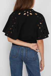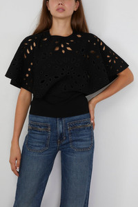 The Ulla Johnson Josie Cape Sleeve Knit Top is a standout piece from their PreFall 25 Collection. This top features beautiful eyelet embroidery on a cape overlay. Wear yours with jeans and boots. - Knit top - Cape overlay - Eyelet embroidery - 83% Viscose, 17% Polyester