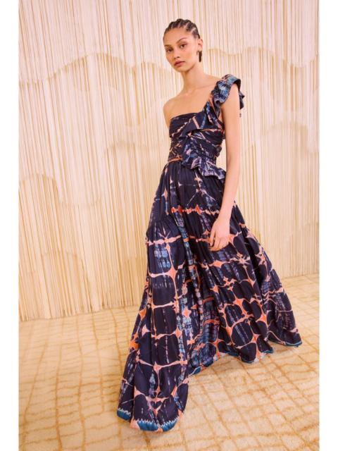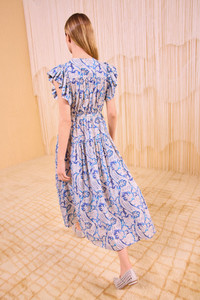 The Kairi is a classic Ulla Johnson dress, designed with short sleeves that flutter and a midi hemline with breezy volume. Crafted from a cotton blend, it features bold botanicals inspired by a vintage indigo panel that are printed atop subtle stripes. This multicolored dress effortlessly pulls over and has side pockets. The neckties fasten or can be left undone. Composition: 66% Cotton, 34% Viscose Size & Fit - Model Height: 5'11" - This midi dress is designed with an elastic waist and is loose at the bust and hip.