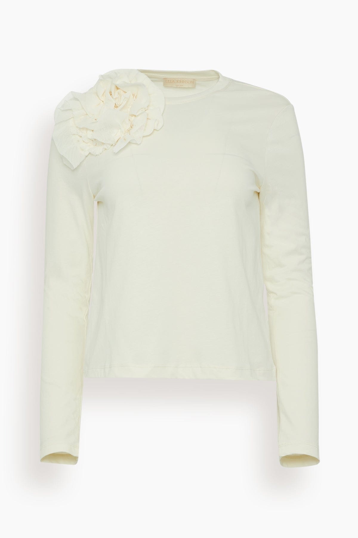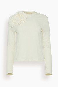 The Ulla Johnson Kaja Top features the feminine details you love from this designer. This t-shirt features a slim silhouette with a beautiful floral shoulder detail. Wear yours with jeans and boots. FIT DESCRIPTION MODEL MEASUREMENTS - Fits true to size, take your normal size - T-shirt - Slim silhouette - Crew neckline - Floral detail - 100% Cotton - Harriet is wearing a size P - Bust: 32" - Waist: 24" - Hips: 30.5" - Height: 5’8.5”
