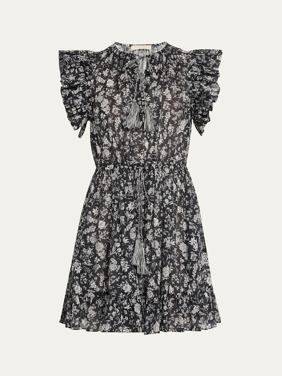 Ulla Johnson "Kalina" floral-printed sun dress coverup finished with tassel tie ends Round neckline with optional self-ties Short flutter sleeves Self-tie drawstring waistband Hem falls above the knee Slipover style Cotton Imported Online Inquiries: BGS21_T6NH9| Store Inquiries: #5021042