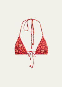 Ulla Johnson "Keaton" floral-printed bikini top Halter neckline; self-ties behind the neck Triangle cups slide on string Mid-back self-ties Nylon/polyamide/elastane Made in Portugal Bottoms sold separately Online Inquiries: BGS21_T6HPG| Store Inquiries: #4988468
