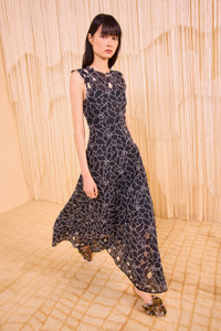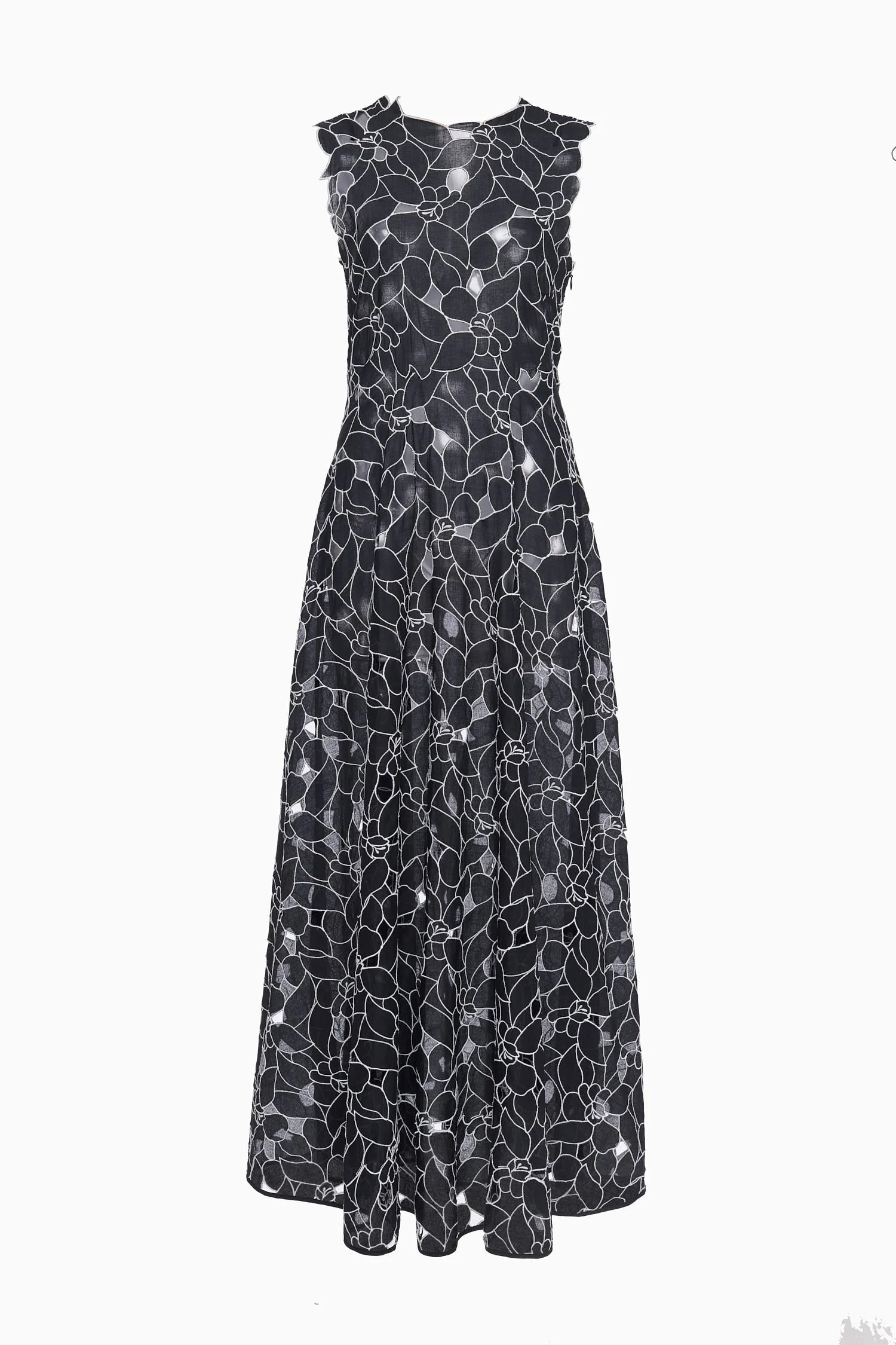 The Kiana Dress is made from black cotton organdy that’s rich in texture, embroidered with contrasting wildflowers and scattered with petal-shaped cutouts for a touch of unexpected transparency. This event-ready dress has a skimming fit that’s carefully engineered to ensure the artwork is seamless and arrives with a removable slip. It fastens with a center-back keyhole and side zipper. Composition: 100% Cotton Size & Fit - Model Height: 5'9" - This midi dress is designed for a close fit and flares at the hem.
