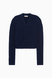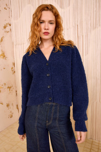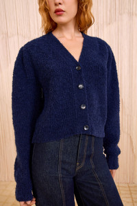 The Kira Cardigan is spun from luxurious alpaca yarns with a lush, boucle texture that’s soft to the touch. This cold-weather essential is a midnight blue that slots effortlessly into your rotation. - Alpaca knit - Model Height: 5'11" - Designed for a relaxed fit - V-neckline - Long sleeves - Horn buttons through front - Composition: 89% superfine alpaca, 11% polyamide - Dry clean only