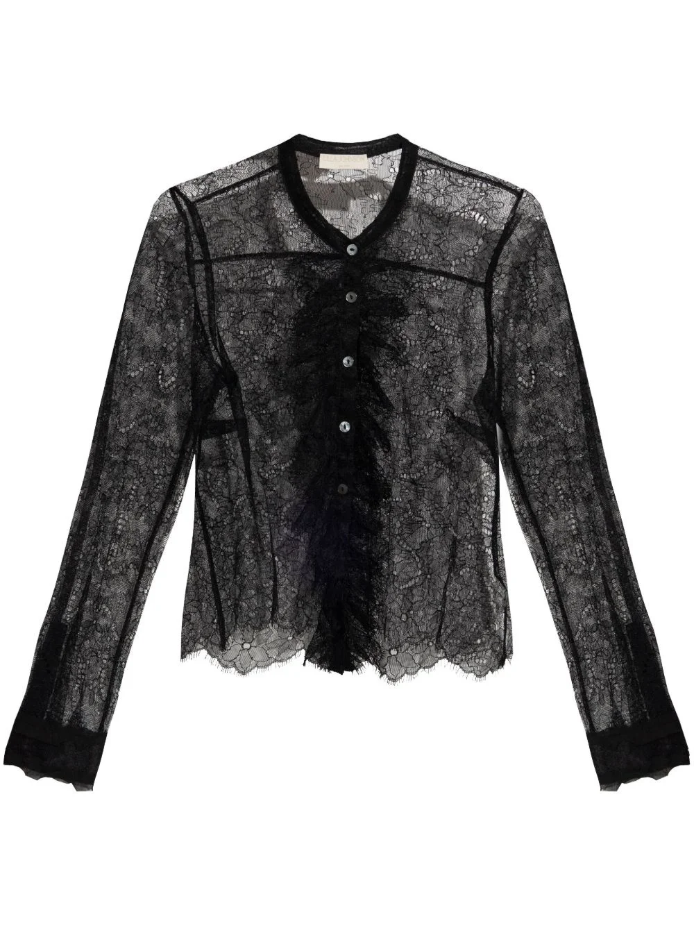 Cecile blouse Highlights - Black - Front button fastening - Buttoned cuffs - Ruffled detailing - Scallop hem Imported Composition Viscose 100% Washing instructions Read Manufacturer Guidelines