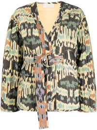 Lakshmi graphic-print belted jacket Crafted from Ulla Johnson's signature hand-loomed cotton, this light to medium weight 'Lakshmi' jacket from the brand's SS23 collection is defined by its bold all-over graphic print and removable belt. Highlights - Multicolour - All-over graphic print - Cotton - Collarless - V-neck - Long sleeves - Belted waist - Straight hem Imported Composition Outer: Cotton 100% Lining: Cotton 100%, Polyester 100% SIZE & FIT Model measurements Height 5 ft 10 in(1.79 m) Bust/Chest 31.49 in(80 cm) Hips 35.03 in(89 cm) Waist 23.62 in(60 cm) FittingInformation Designed to be unstructured, offering a loose fit throughout The tie fastening gives an adaptable and personalised fit Made from a midweight non-stretch fabric This piece fits true to size – take your usual size