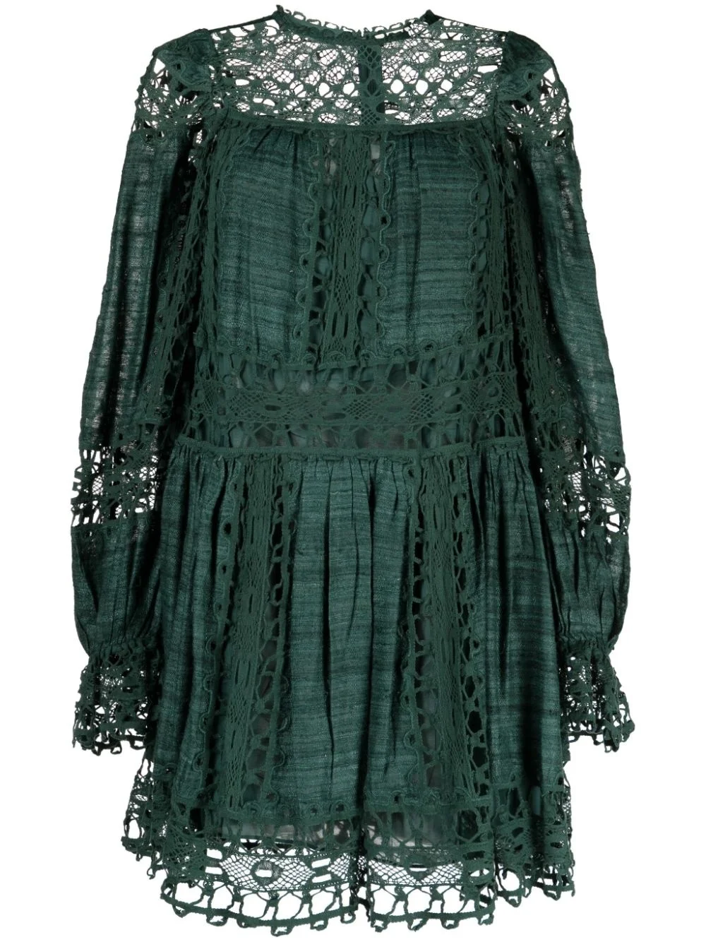 Lata lace minidress Highlights - Teal green - Cotton-silk blend - Semi-sheer construction - Lace detailing - Round neck - Long sleeves - Dropped waist - Concealed rear zip fastening - Flared hem - Thigh-length Imported Composition Outer: Cotton 50%, Silk 50% Lining: Cotton 52%, Viscose 48% SIZE & FIT Model measurements Height 5 ft 10 in(1.77 m) Bust/Chest 28.74 in(73 cm) Hips 35.82 in(91 cm) Waist 24.4 in(62 cm)