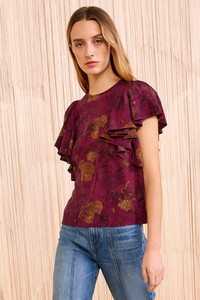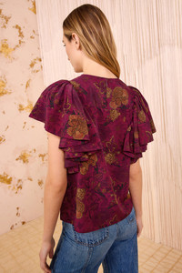 The Lena Blouse showcases details signature to Ulla Johnson, including fluttering sleeves and dynamic botanicals drawn from a 19th century French print. Cut from fluid silk crepe de chine, this multicolored top pairs elegantly with denim and tailored separates. - Silk crepe de chine - Model Height: 5'11" - Designed for a relaxed fit - Short sleeves - Concealed zipper along back - Composition: 100% silk - Dry clean only