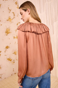 Liese Silk Ruffle Neckline Long Sleeve Blouse