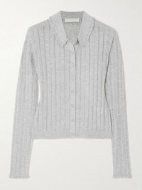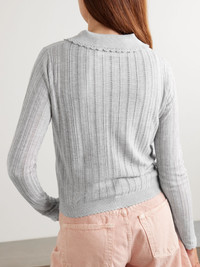 Lottie crochet-trimmed pointelle-knit cardigan Gray