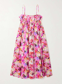 EDITORS'NOTES Renowned for her distinctive use of patterns, Ulla Johnson often incorporates lush floral prints into her designs - this 'Lucille' midi dress features vibrant botanicals that appear painted on. It's made from cotton-poplin that's pleated at the fitted bust and has a full skirt. Adjust the straps to your ideal fit. SIZE & FIT Model measurements: - Fits true to size, take your normal size - Designed to be fitted at the bust, loose at the waist and hip - Fully adjustable shoulder straps - Lightweight, non-stretchy fabric - Model is 177cm/ 5'10" and is wearing a US 2 - Bust: 75cm/ 29.5" - Waist: 60cm/ 23.5" - Hip: 93cm/ 36.5" DETAILS & CARE - Multicolored cotton-poplin - Concealed hook and zip fastening at side - 100% cotton - Machine wash