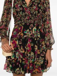 Lya floral-print mini dress Highlights - Black/multicolour - Silk - Georgette crepe - All-over floral print - V-neck - Chest pleat detailing - Semi-sheer long puff sleeves - Elasticated cuffs with ruffled trim - Fitted waistline - Flared tiered skirt - Two side inset pockets - Thigh-length - Ruffle hem - Concealed side zip fastening Imported Composition Outer: Silk 100% Lining: Polyester 100% SIZE & FIT Model measurements Height 5 ft 11 in(1.8 m) Bust/Chest 31.49 in(80 cm) Hips 35.82 in(91 cm) Waist 24.8 in(63 cm) FittingInformation Designed for a close fit at the chest and waist with a loose fit at the hip Made from a midweight non-stretch fabric This piece fits true to size – take your usual size