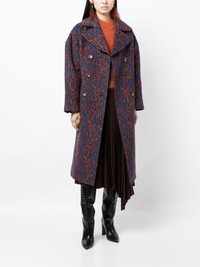 Marianna double-breasted coat Highlights - Blue/red - Wool blend - Patterned jacquard - Double-breasted button fastening - Wide peak lapels - Long sleeves - Mid-length - Straight hem Imported Composition Outer: Wool 62%, Polyamide 28%, Polyester 10% Lining: Polyester 100% SIZE & FIT Model measurements Height 5 ft 10 in(1.77 m) Bust/Chest 28.74 in(73 cm) Hips 35.82 in(91 cm) Waist 24.4 in(62 cm) FittingInformation Designed for an oversized fit, offering additional room throughout The vented hem offers movement at the rear Made from a heavyweight non-stretch fabric This piece fits true to size – those with a petite frame may wish to take one size down Washing instructions Dry Clean Only