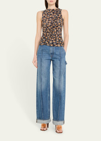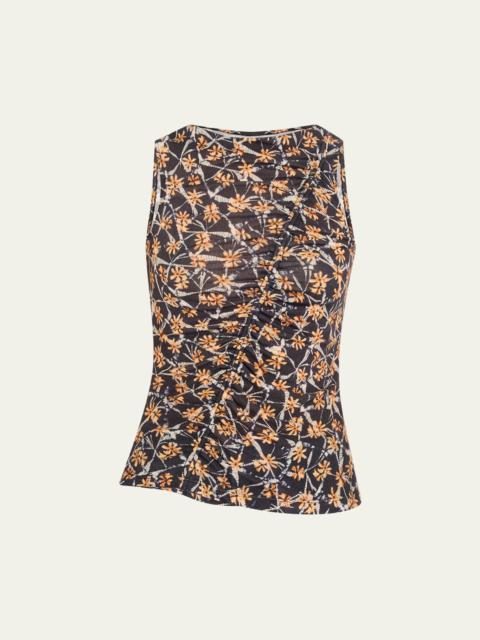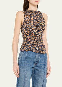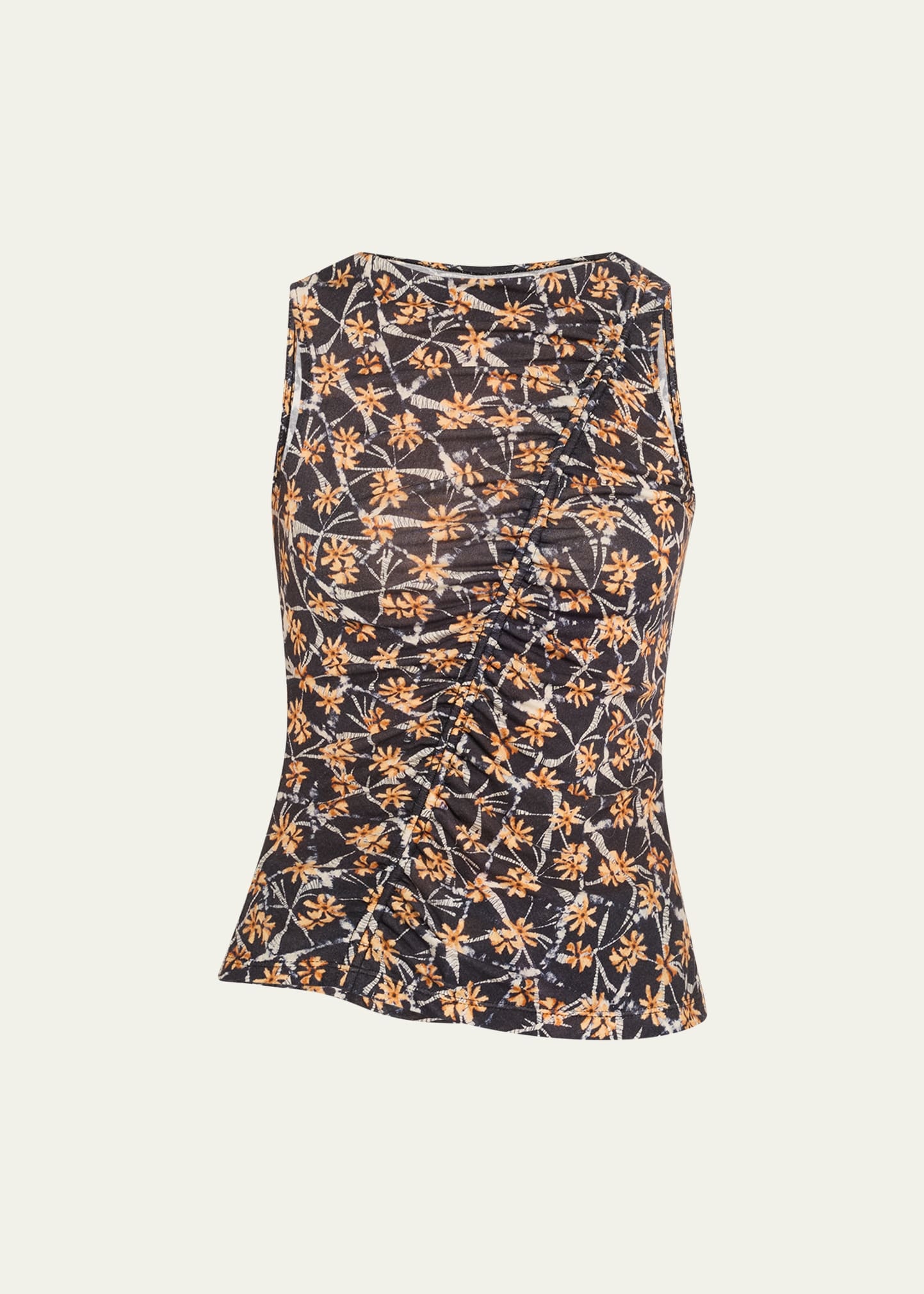 Ulla Johnson "Medea" top with asymmetric shirring Bateau neckline Sleeveless Hip length Slim fit Pullover style Lyocell Machine wash cold Imported Online Inquiries: BGS21_T6XWQ| Store Inquiries: #4952732