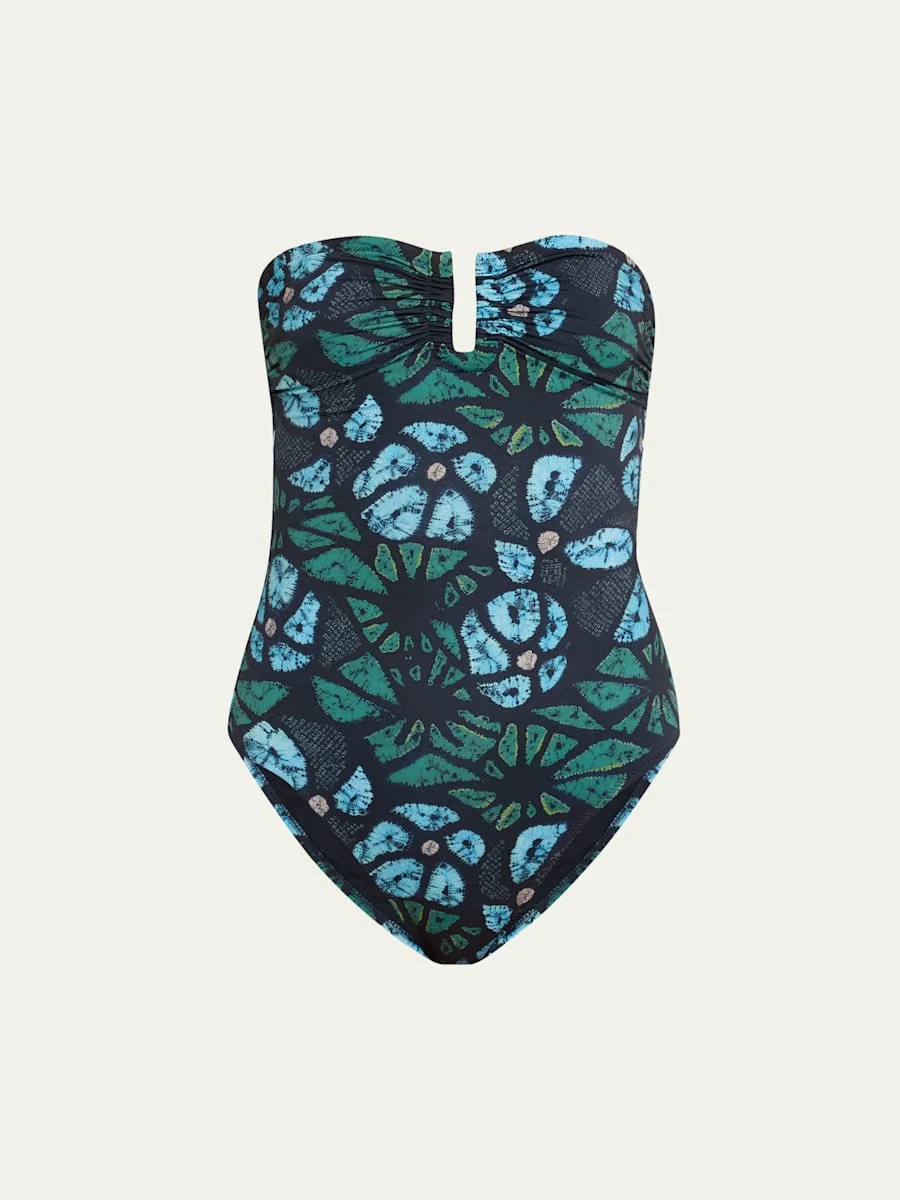 Ulla Johnson "Monterey" one-piece swimsuit in Urchin print with central U-ring hardware Strapless neckline Moderate seat coverage Nylon/polyamide/elastane Fully lined Made in Portugal Online Inquiries: BGS21_T6FTU| Store Inquiries: #4976504