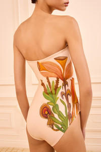 The Monterey Maillot is adorned with gestural, surreal botanicals from the celebrated work of Art Brut painter Anna Zemankova. Perfect for far-flung destinations, this multicolored one-piece has ruching that lightly sculpts, a strapless sweetheart neckline with a structured notch, and boning at the sides for a secure fit. - Italian swim fabric - Model Height: 5'10" - Strapless - Medium brief coverage - Composition: 80% polyamide, 20% elastane - Hand wash cold This item is part of our collaboration with the foundation of Anna Zemankova.