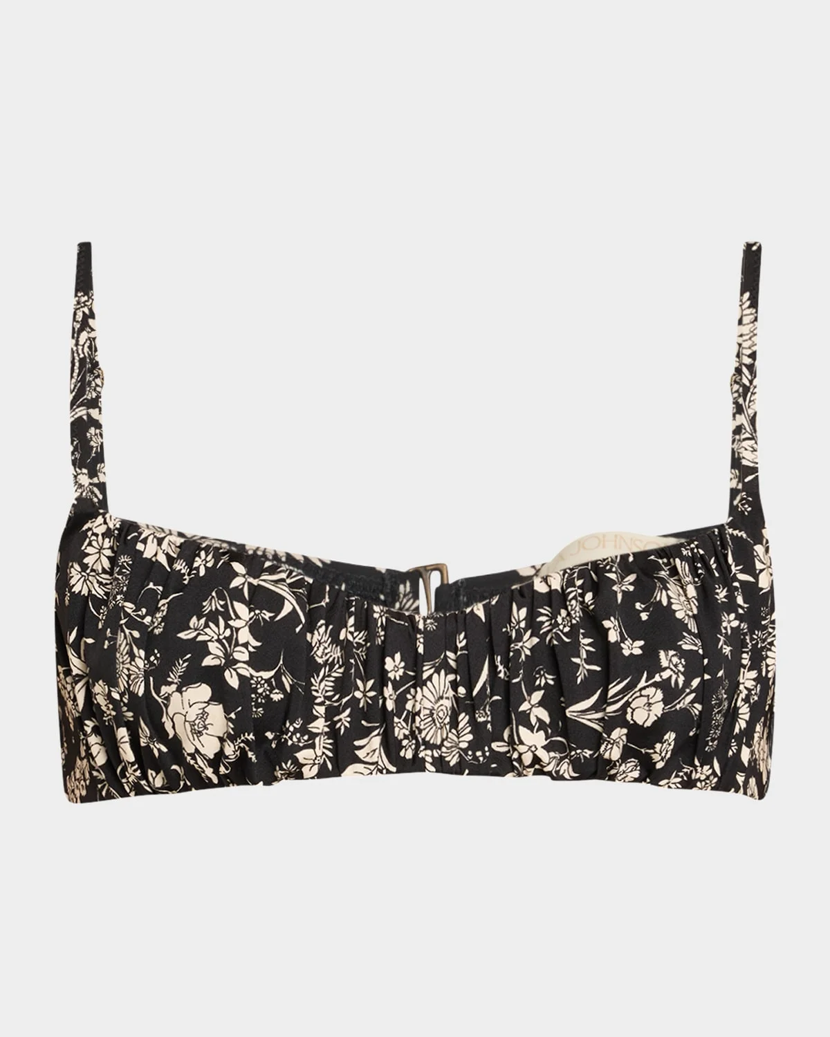 - Ulla Johnson "Naomi" floral-printed bikini top with ruched detailing - Scoop neckline - Adjustable straps - Mid-back clasps - Nylon/polyamide/elastane - Made in Portugal - Bottoms sold separately