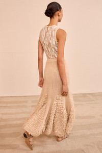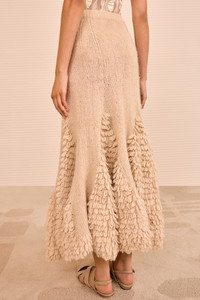 The Nathalie Skirt combines the tonal elegance of alabaster white with artisanal craft—it is hand-knitted from soft alpaca by our partners in Peru with looped detailing that comes alive at the hemline. The A-line silhouette skims the form before giving way to fluting that moves poetically. - Hand-knitted alpaca - Model Height: 5'10" - Midi length, high-rise elastic waist - Flared hemline - Slip-on style - Composition: 70% baby alpaca, 23% polyamide, 7% wool - Dry clean only