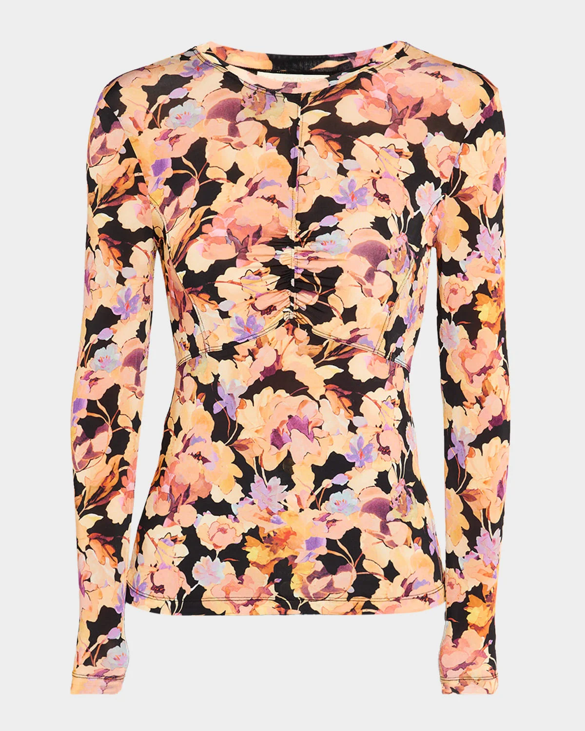Ulla Johnson "Neri" ruched top adorned with a vibrant print, crafted from ultra-soft stretch-jersey Crew neckline Long sleeves Slim fit Hem sits at the hip Pullover style & nbsp; Rayon/cellulose acetate/elastane Machine wash warm Imported SIZE & FITModel measurements: 5 & apos;10" tallModel is wearing a US size 4/Small