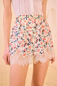 Our Noella Shorts are rendered in fluid crepe de chine that’s decorated with botanicals in abstract, painterly gestures. These high-rise, multicolored shorts are elasticated at the waist for comfort, while the Chantilly lace trims at the cuffs add vintage allure. This style effortlessly pulls on. Composition: 100% Silk This item runs large, we suggest sizing down for the perfect fit. Size & Fit - Model Height: 5'10"