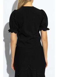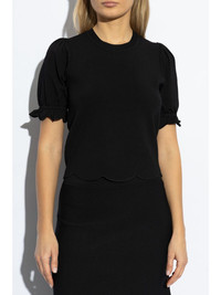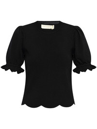 Noemi top Highlights - Black - Elasticated cuffs - Short puff sleeves - Scallop edge Imported Composition Viscose 71%, Polyester 29%