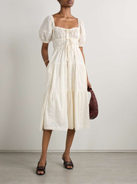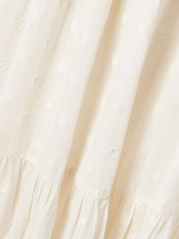EDITORS'NOTES Ulla Johnson's bohemian 'Palma' dress looks so effortlessly chic with minimal styling effort. Made from fil coupe cotton-voile featuring subtle polka dots, it has puffed sleeves and ties at the bodice. The floaty, tiered hem is traced with pretty crochet trims. SIZE & FIT Model measurements: - Fits true to size, take your normal size - Intended to be slightly fitted at the bust and waist, loose at the hip - Drawstring waist for a flexible fit - Lightweight, non-stretchy fabric - Model is 180cm/ 5'11" and is wearing a US 4 - Bust: 80cm/31.5" - Waist: 70cm/27.5" - Hip: 93cm/36.5" DETAILS & CARE - Ivory cotton-voile - Slips on - 100% cotton - Machine wash - Designer color: Pristine