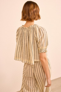 The Paros Coverup is hand-loomed from white cotton with multihued yarns that create graphic stripes. This playful silhouette features contrasting tassel adornments and has a cropped hem—coordinate with the matching Josephine Pant. - Hand-loomed cotton - Model Height: 5'11" - Designed for an oversized fit - Tasseled neckties - Short sleeves with elastic cuffs - Pullover-style - Composition: 100% cotton - Hand wash cold