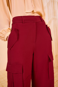 The Pax Pant combines a modern cargo silhouette with a sumptuous dark red hue. Designed with a mid-rise waist, this essential is tailored from our signature satin-back crepe with subtle texture and a silken underside. The oversized pockets lend a utilitarian air, while the straight-leg provides elegant versatility. It fastens with a concealed front hook and zipper. Composition: 100% Viscose