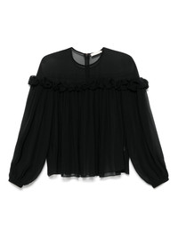 Peggy blouse Highlights - Black - Concealed rear hook and zip fastening - Elasticated cuffs - Ruffled detailing - Balloon sleeves Imported Composition Silk 100% SIZE & FIT Model measurements Height 5 ft 9 in(1.75 m) Bust/Chest 34.64 in(88 cm) Hips 36.61 in(93 cm) Waist 26.37 in(67 cm) FittingInformation Designed to be unstructured, offering a loose fit throughout Made from a lightweight non-stretch fabric Washing instructions Dry Clean Only
