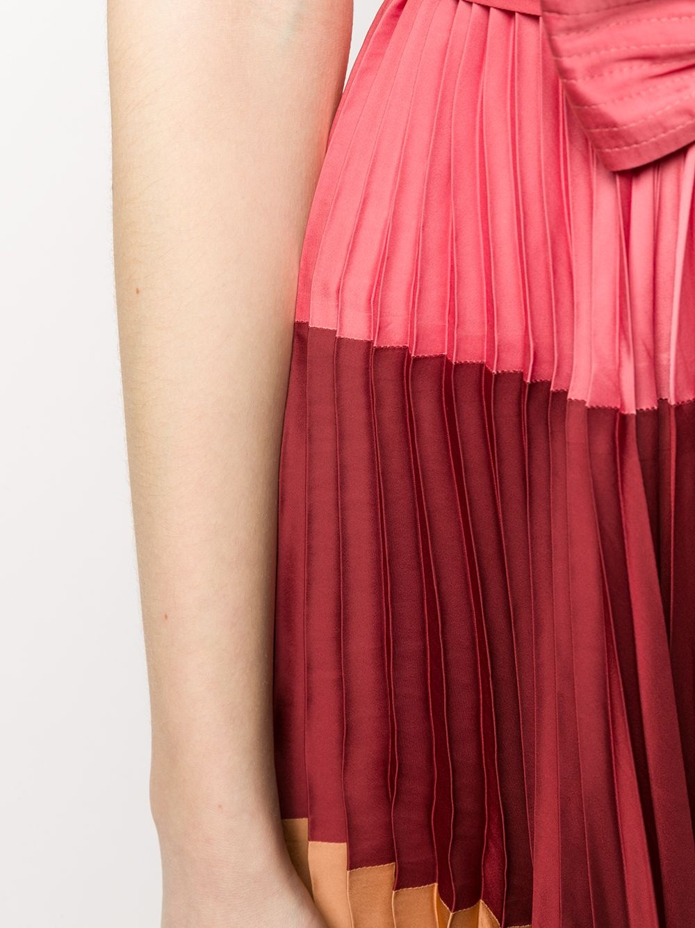 pleated stripe dress Pink pleated stripe dress from Ulla Johnson featuring a wrap style V neck, a belted waist, a sleeveless design, pleated skirt and a handkerchief hem. Imported Composition Polyester 100% SIZE & FIT Model measurements Height 5 ft 9 in(1.76 m) Bust/Chest 31.88 in(81 cm) Hips 37 in(94 cm) Waist 24.4 in(62 cm) Measurement Shoulder Width 12.2 in(31 cm) LENGTH 50.78 in(129 cm) BUST 31.88 in(81 cm) FittingInformation This piece fits true to size. We recommend you get your regular size Designed for a loose fit with a close fit at the waist Made with a mid-weight non-stretch fabric