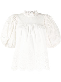 puff-sleeve cotton blouse Highlights - Chalk white - Cotton - Embroidered design - Cut-out detailing - Frilled high neck - Short puff sleeves - Scallop hem Imported Composition Body: Cotton 100% SIZE & FIT Model measurements Height 5 ft 10 in(1.77 m) Bust/Chest 31.49 in(80 cm) Hips 35.43 in(90 cm) Waist 25.19 in(64 cm) FittingInformation Designed to be unstructured, offering a loose fit throughout Made from a midweight non-stretch fabric This piece fits true to size – take your usual size
