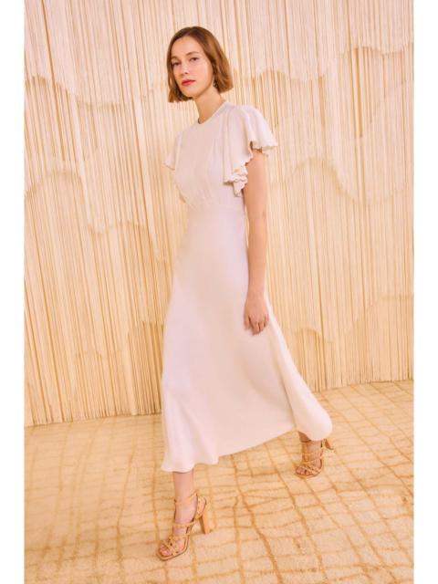 Our Estelle Dress is beautifully constructed from organic cotton poplin in a rich midnight blue. Framed by gently puffed sleeves, it flatters the form with intricate seams that create the illusion of a corset and unfurls to a midi skirt full of elegant volume. It is finished with delicate ruffles and fastens with a concealed back zipper. Composition: 100% Cotton