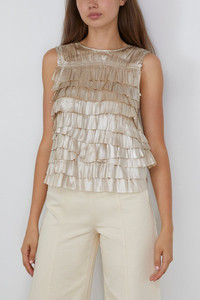 The Ulla Johnson Quinn Layered Sleeveless Top features the unique details you love from this designer. This sleeveless top has a playful, ruffled bodice in plisse satin. Wear yours with the matching skirt and heels. - Sleeveless top - Layered ruffles - Straight silhouette - Plisse satin - 100% Polyester