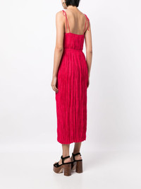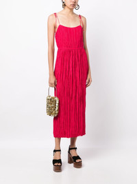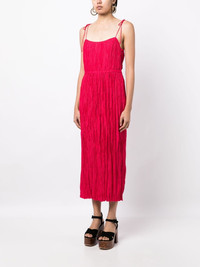 ruched tie-strap maxi dress Highlights - Hot pink - Ruched detailing - Spaghetti straps - Tie-fastening straps - Square neck - Ankle-length - Straight hem Made in United States Composition Body: Polyester 100% SIZE & FIT Model measurements Height 5 ft 10 in(1.77 m) Bust/Chest 31.49 in(80 cm) Hips 35.43 in(90 cm) Waist 25.19 in(64 cm) FittingInformation Designed for a slim fit that sits just away from the body offering a close yet comfortable fit The adjustable shoulder straps allow for a preferred fit when worn The pleated construction on this piece allows for additional movement and flexibility in the fit This piece fits true to size – take your usual size