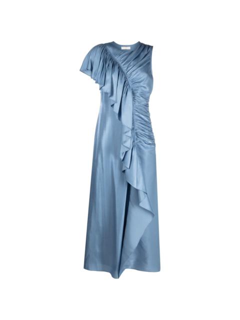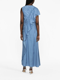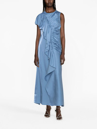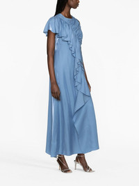 ruffle-trim charmeuse long dress Rendered in a cornflower blue colour, Ulla Johnson's Lali dress is asymmetric cut to a flared silhouette and elevated with soft ruffles at the front that add movement and dimension. Its sleeveless design falls to a skirt that grazes the ankle. Highlights - Cornflower blue - Charmeuse - Ruffled trim - Ruched detailing - Round neck - Sleeveless - Side zip fastening - Shoulder zip fastening - Straight hem - Flared - Long length Imported Composition Outer: FSC Viscose 68%, Polyester 32% Lining: Polyester 100% SIZE & FIT Model measurements Height 5 ft 11 in(1.8 m) Bust/Chest 34.25 in(87 cm) Hips 35.82 in(91 cm) Waist 24.8 in(63 cm) FittingInformation Designed for a slim fit that sits just away from the body offering a close yet comfortable fit Made from a midweight non-stretch fabric This piece fits true to size – take your usual size Measurement BUST 36.22 in(92 cm) HIPS 38.58 in(98 cm) LENGTH 53.93 in(137 cm) Shoulder Width 12.99 in(33 cm) WAIST 29.92 in(76 cm) Washing instructions Dry Clean Only
